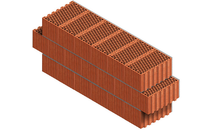 Блок керамический поризованный Porotherm 44 используется в строительстве несущих наружных и внутренних однослойных стен. Толщина стены составит 400 мм. Блоки соединяются между собой структурой «паз-гребень», при этом вертикальный шов не заполняется кладочным раствором. Не требует дополнительной теплоизоляции.