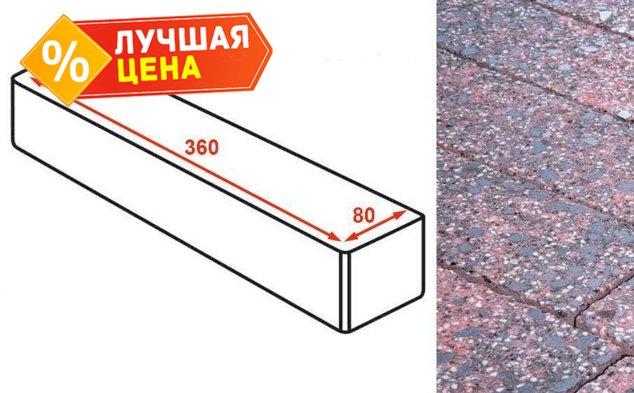 Плитка тротуарная Готика Granite FINERRO, ригель, Дымовский 360x80x80 мм